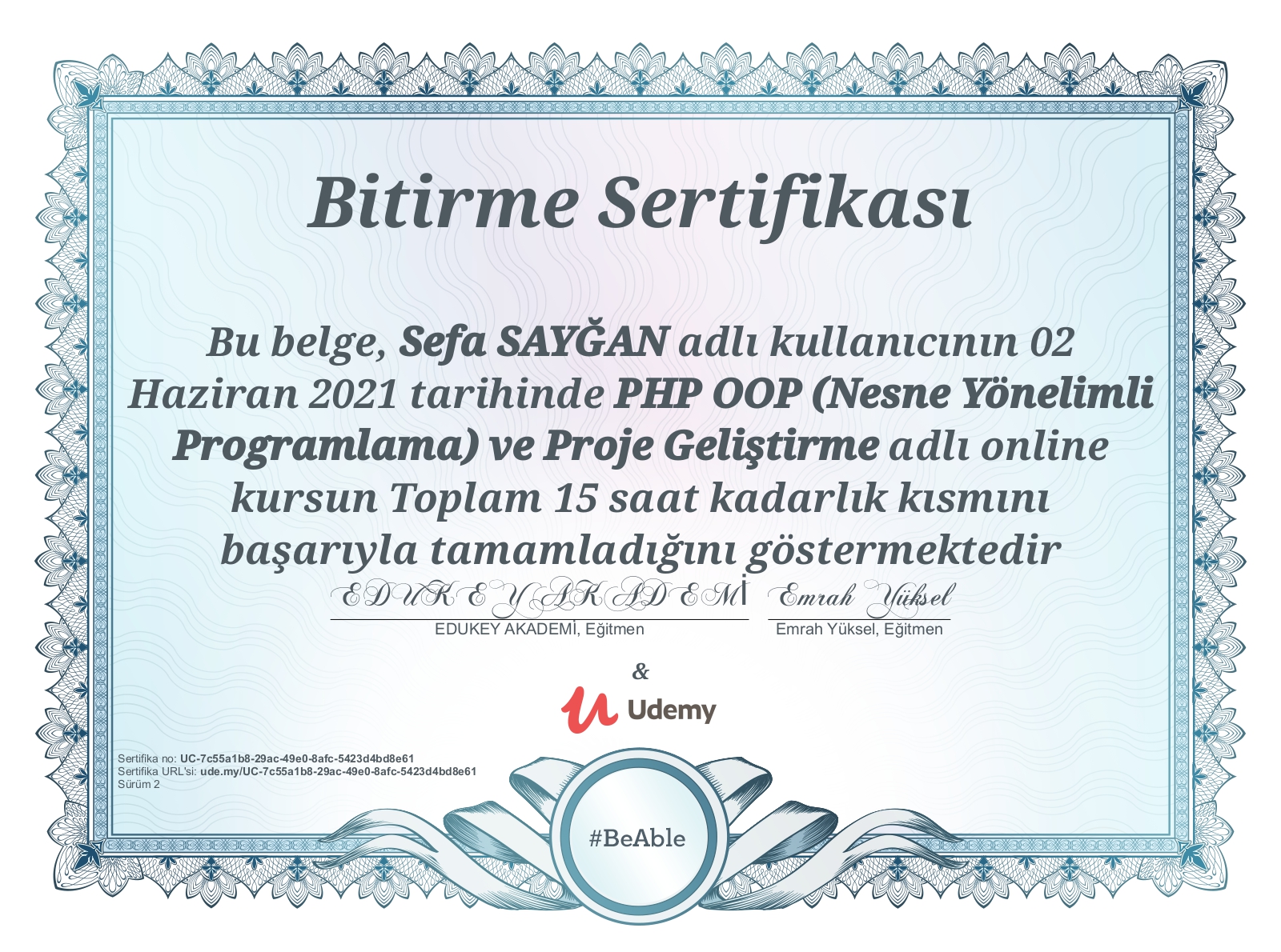 Sayganweb içerisinde ; Html5, Css3 , Boostrap Framework, Php Pdo , Php Laravel Framework, Javascript, React, Flutter, Mysql, Postgresql, Rest, Soap, Wordpress, joomla, Whmcs, Soapui, Postman, Navicat, Adobe Photoshop, Vmware workstation ve esxi, Trello, Git, Mikrotik, Linux vb. teknolojiler kullanılarak geliştirilmeler yapıldı.